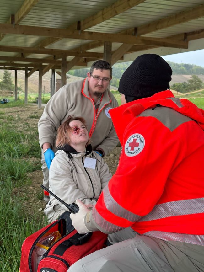 Aux côtés d’une trentaine de bénévoles venus de l’Yonne, de l’Aube et de l’Essonne, nous avons mis en œuvre un poste de secours fictif autour d’un scénario de motocross et autocross, avec pour objectif :